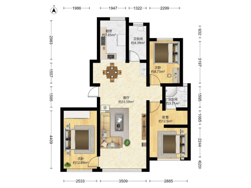 房屋戶型: 3 室2廳 1 廚2衛(wèi)