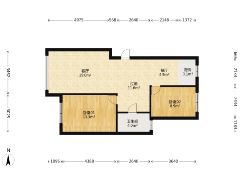 房屋戶型: 2 室1廳 1 廚1衛(wèi)