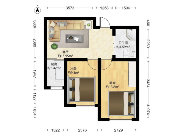 房屋戶型: 2 室1廳 1 廚1衛(wèi)