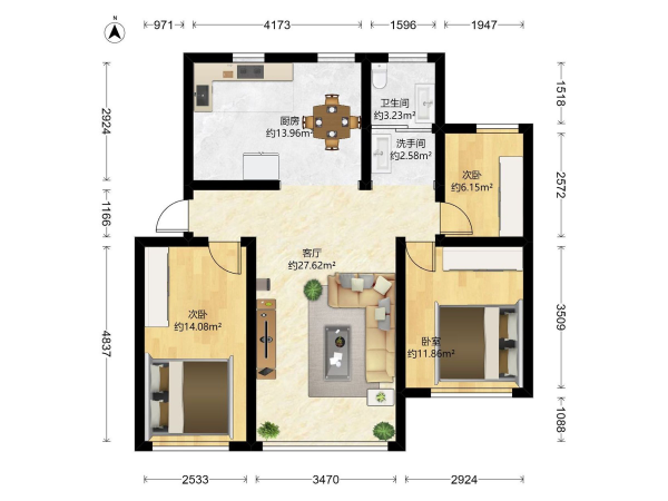 房屋戶型: 3 室2廳 1 廚2衛(wèi)