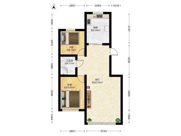房屋戶型: 2 室2廳 1 廚1衛(wèi)